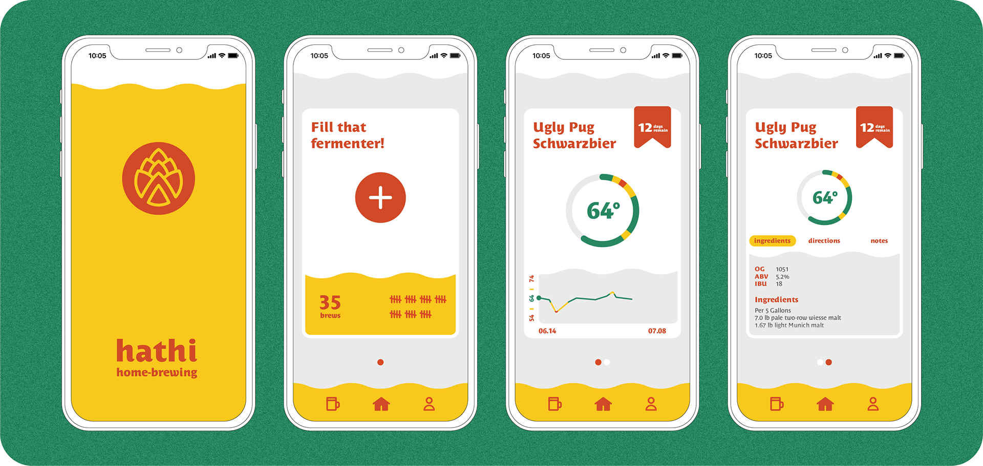 Three sections define Hathi's mobile component; the Recipe Book, the Brewing Companion and the Home-Brew Community. This allows users to search and save community generated recipes, monitor their own's progress, share their work and learn from others'.