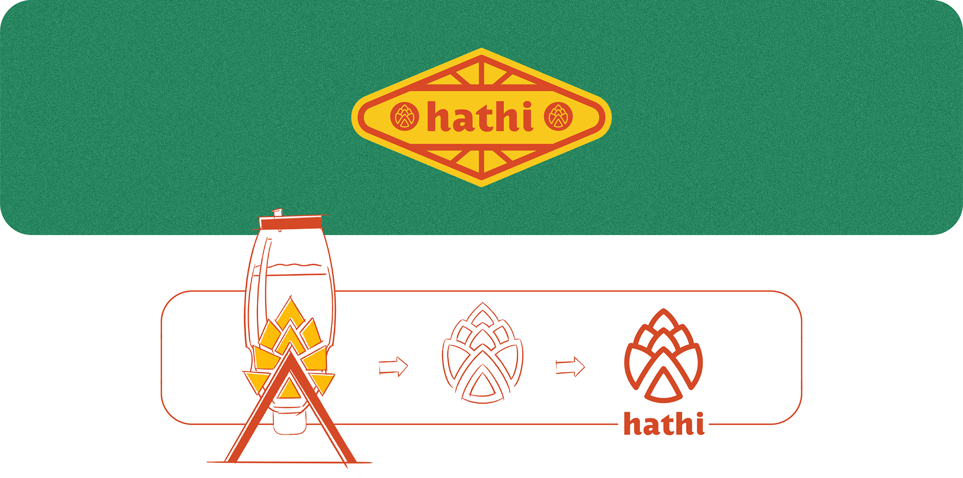 Pictured in and out of relief, alone and in its horizontal and vertical orientations, the Hathi logo is classic and colourful, bright and exciting. It is one which wouldn't look out of place in a Bavarian beer hall or on a local craft beer's label. Fitting for old traditions and new ones, in big batches or the small.